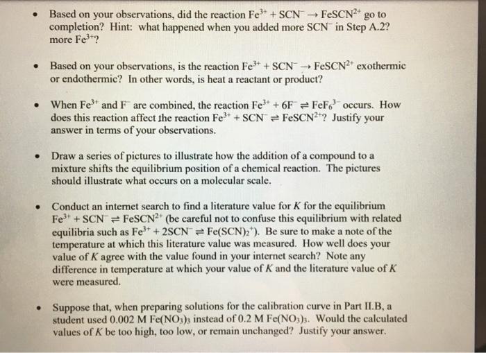 Fe3 aq SCN- aq FeSCN2 aq Expert Answer 100 3 ratings Fe3 aq SCN- aq FeSCN2 aq Iron III ion and thiocy. Show a sample calculation to help explain this. How do you find the initial concentration of fe3.